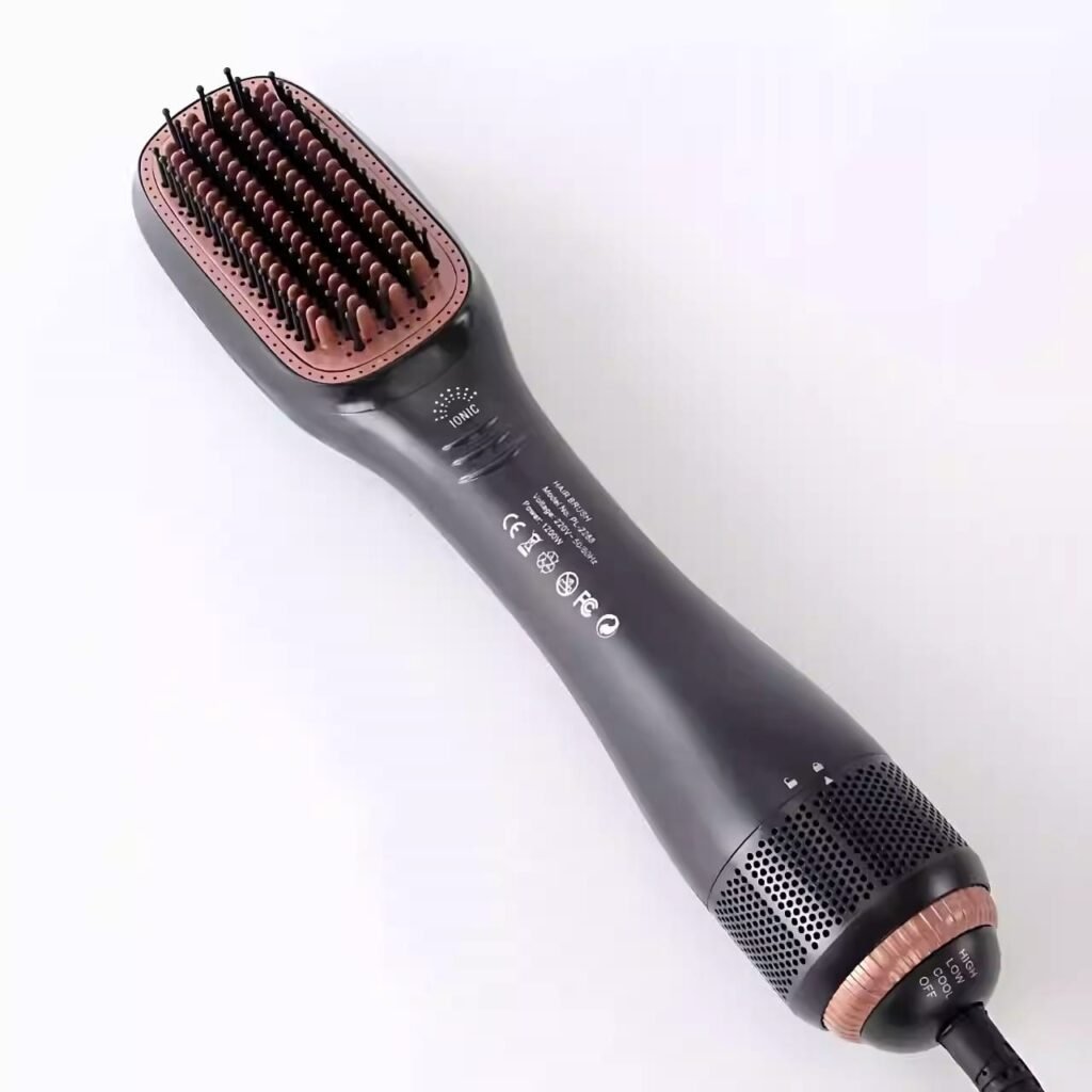 مشط تصفيف وتجفيف 2 في 1 بقوة 1200 واط، يجمع بين مجفف الشعر وفرشاة التصفيف في جهاز واحد، لتجفيف أسرع وتصفيف أسهل ولوك صالون من البيت لكل أنواع الشعر.